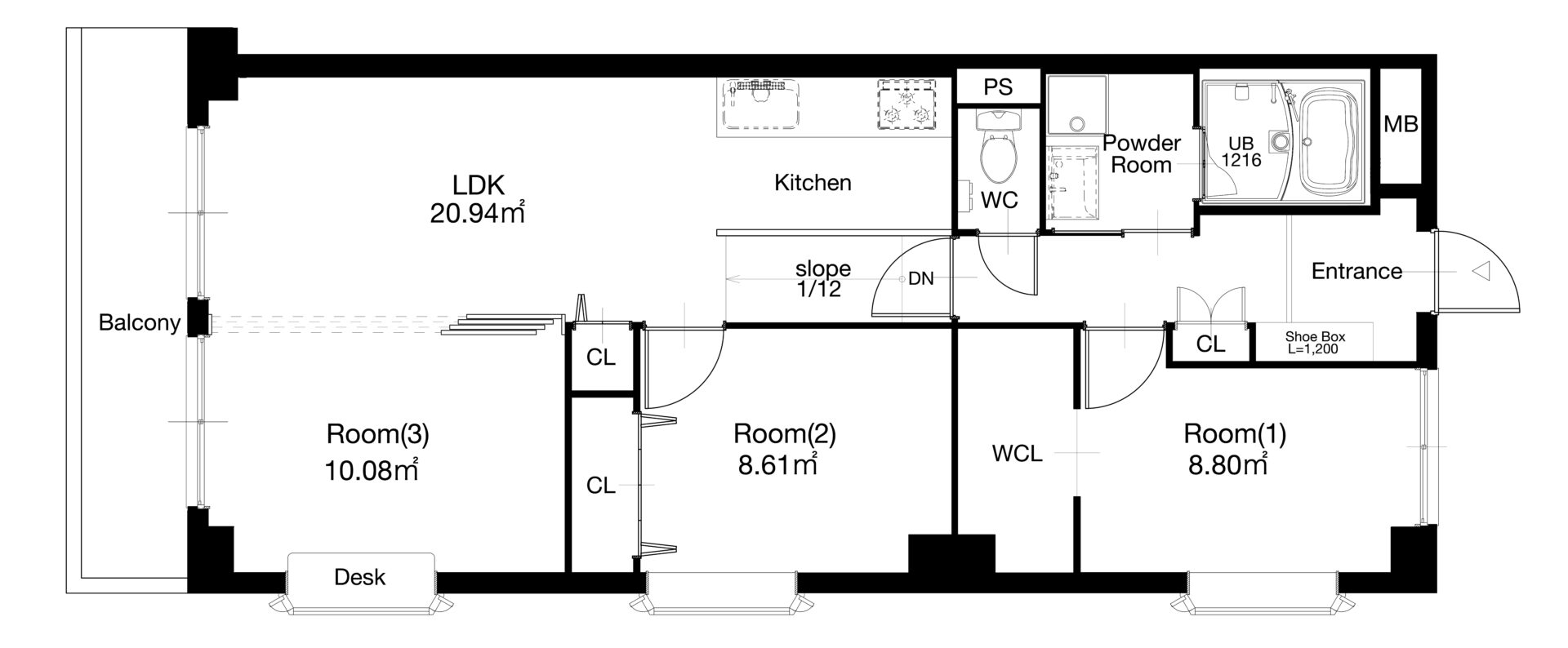 専有面積:67.41㎡ / バルコニー面積:5.66㎡
